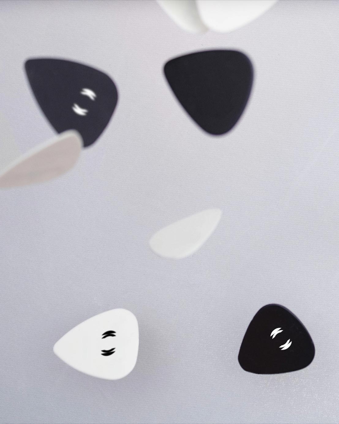 El símbolo combina ideas de ondas electromagnéticas con el concepto de protección y fuerza mágica. Elementos visuales como formas de onda, espectrogramas y bloques de texto inspirados en los DAWs hacen eco del mundo de la producción musical. La tipografía, basada en letreros de teatros antiguos y documentos clásicos, conecta con la tradición y el dominio del arte.
